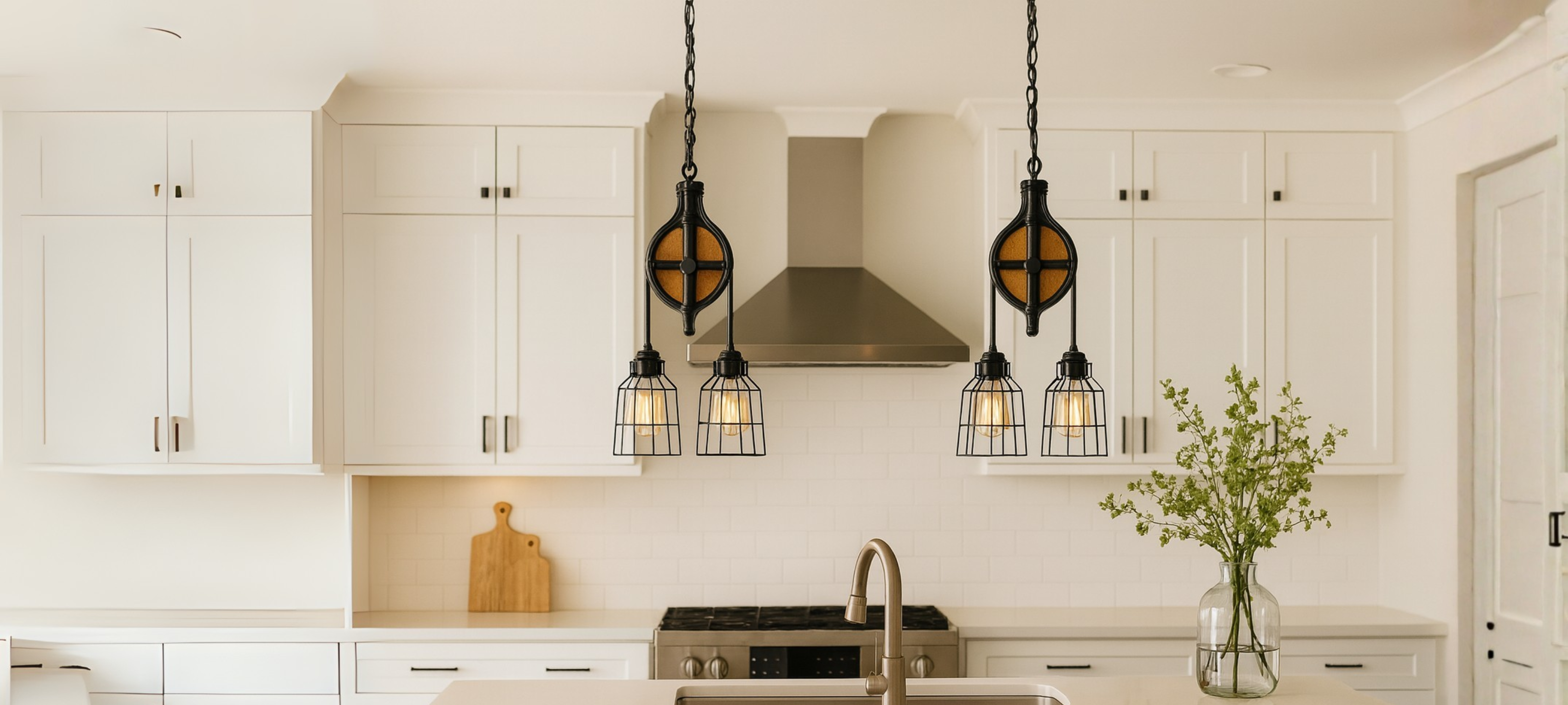 UL LISTED Farmhouse Pulley Light Fixture for Kitchen | Industrial Modern Hanging Lamp