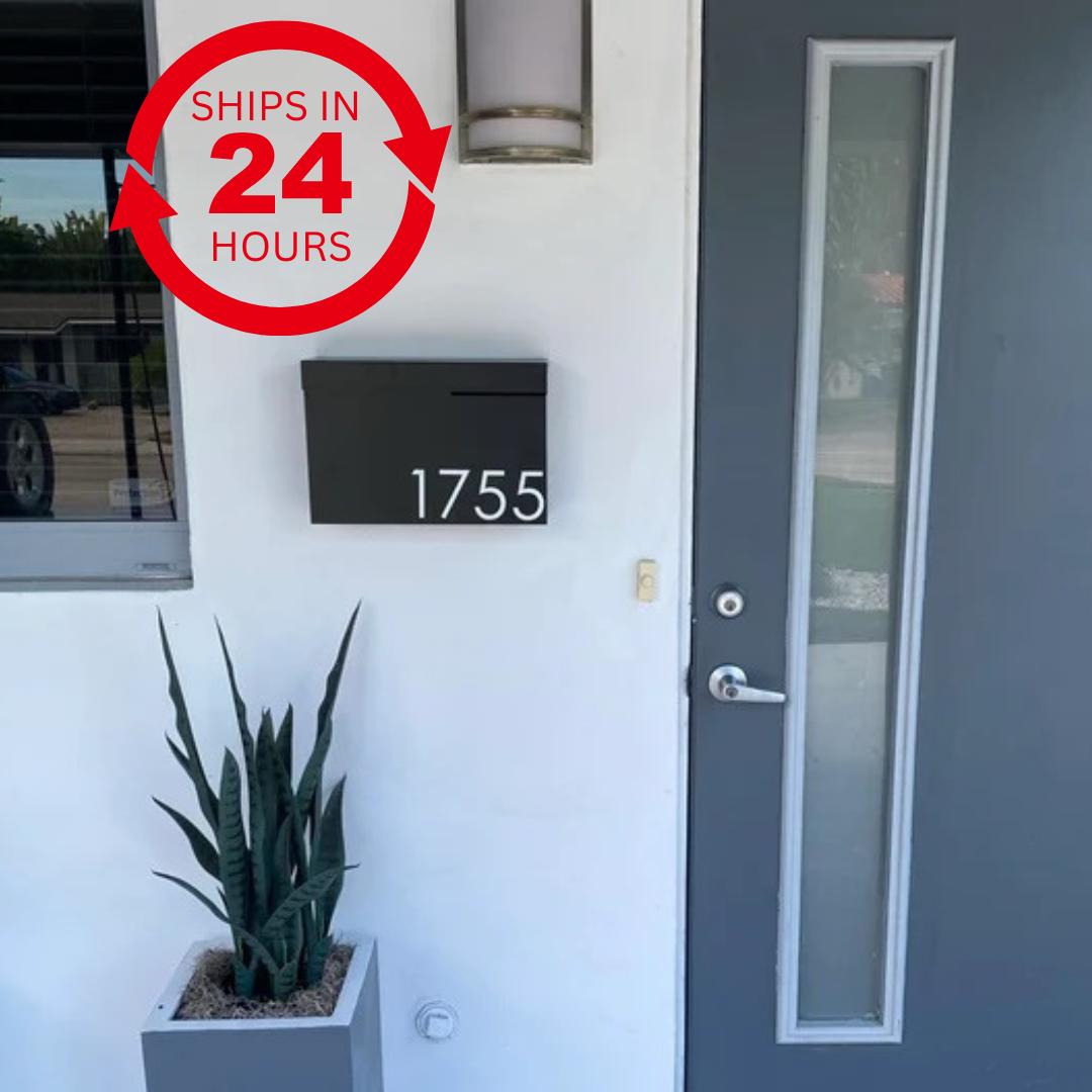 Modern Locking Mailbox: Black Aluminum Wall Mount with Numbers