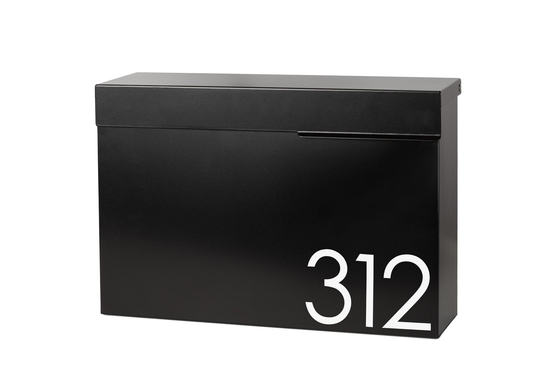 Modern Locking Mailbox: Black Aluminum Wall Mount with Numbers