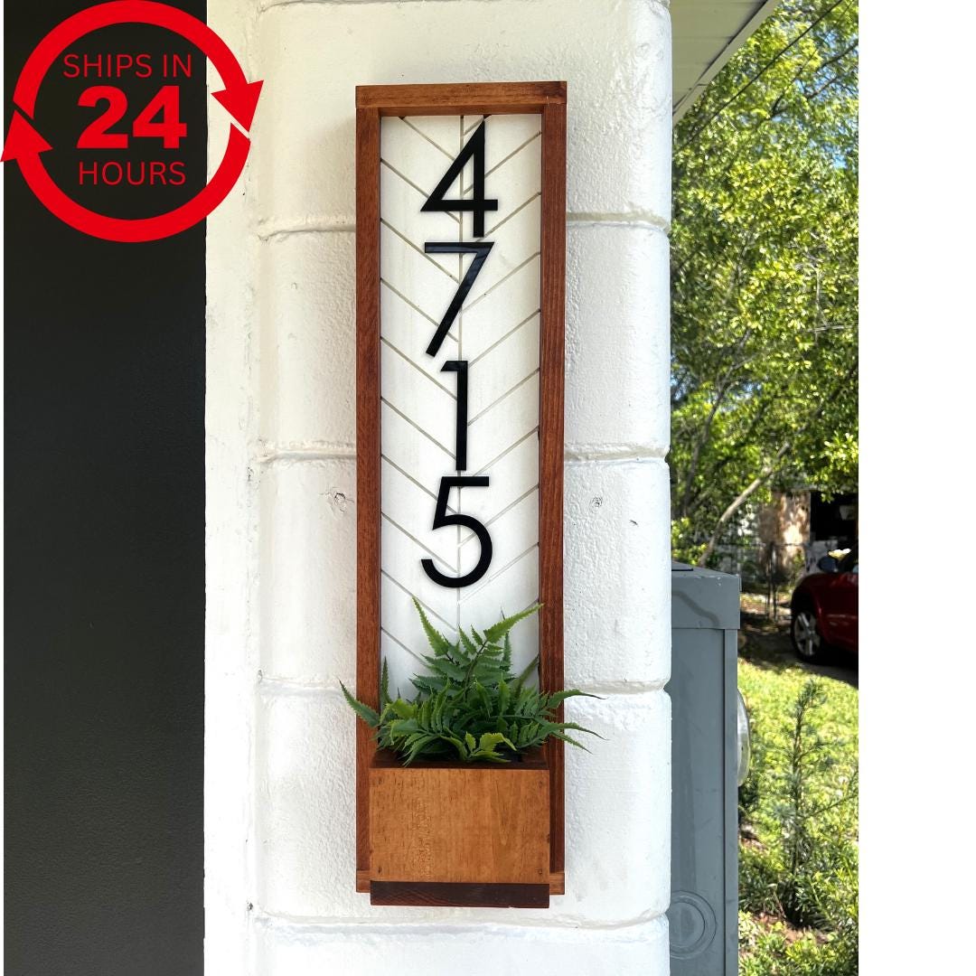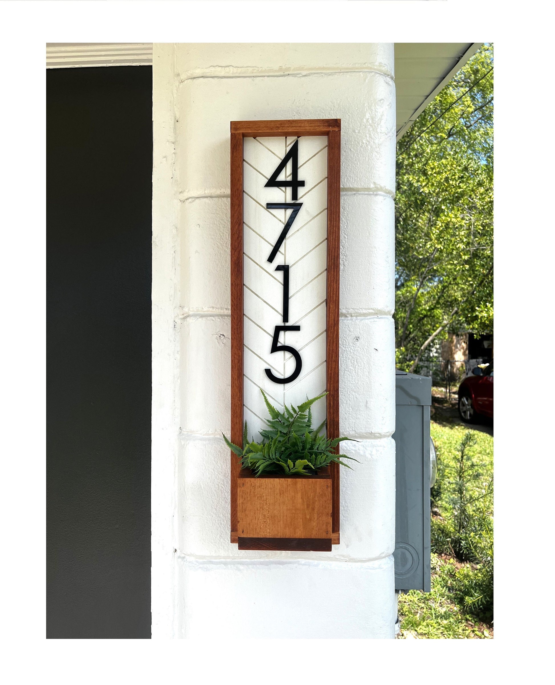 This BEAUTIFUL ADDRESS SIGN WITH PLANTER is the perfect house numbers sign for outside your home. It is a modern house numbers plaque that has LARGE ADDRESS NUMBERS so it can be EASILY FOUND by delivery workers and emergency responders. It will greatly UPGRADE YOUR CURB APPEAL and make you the envy of all your neighbors. They also make GREAT HOUSEWARMING GIFTS for your friend or family member that has recently moved or closed on a home!